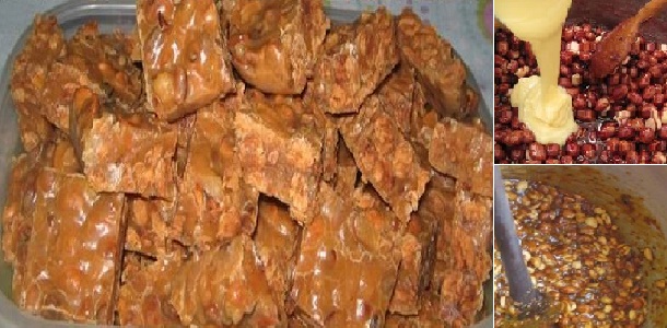 Poner en la cacería el cacahuete o manies, el azúcar y la margarina Llevar al fuego, revolviendo siempre Cuando empiece a formar una salsa, poner la leche condensada Mueve bien, hasta que suelte del fondo de la olla, poner en una forma untada con margarina Deje enfriar y cortar en cuadrados.
